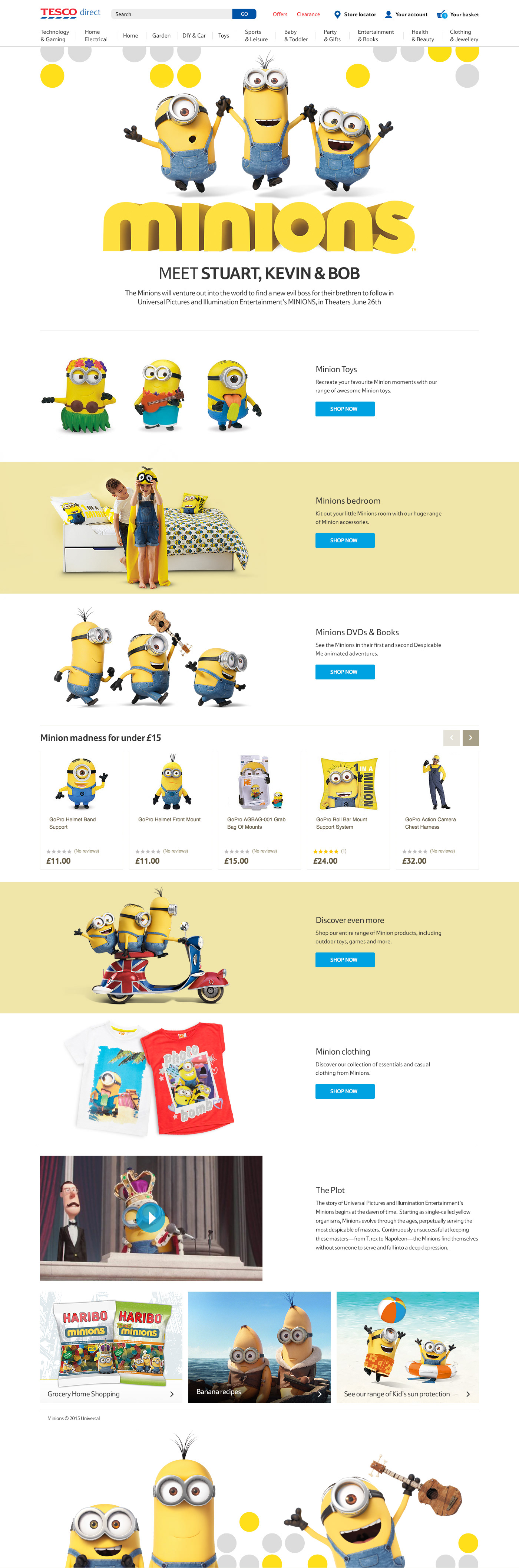 I was the design lead for the Minions movie event page design for Tesco direct.
